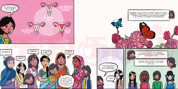 உத்தரப்பிரதேசத்தில் கிராமப்புற பெண்களுக்கான ராஜீவ்காந்தி மகிளா விகாஸ் பரியோஜனா எனும் திட்டத்தில் 2014ம் ஆண்டிலிருந்து பணியாற்றி வருபவர் அரீனா. இவரது காமிக்ஸின் பெயர் ‘Spreading Your Wings’ ‘‘முதன் முதலில் இந்தியாவில் உத்தரப் பிரதேசத்துக்கு வந்து கிராமப்புறப் பெண்களுடன் இணைந்து பணியாற்றத் தொடங்கியபின்தான் மாதவிடாயின் சவால்களை அனுபவபூர்வமாக உணரத் தொடங்கினேன்.