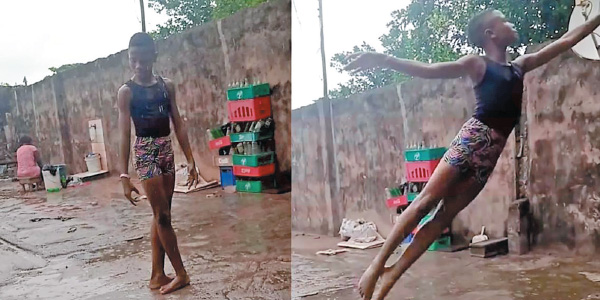 கொட்டும் மழையில் கரடுமுரடான கான்கிரீட் தரையில் பாலே நடனமாடி அசத்தியிருக்கிறான் ஆப்பிரிக்க சிறுவனான அந்தோணி மடு.