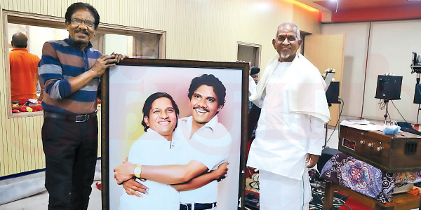 * இசைஞானியின் பூஜைக்கு வந்து வாழ்த்தி மகிழ்ந்த இயக்குநர் பாரதிராஜா, ப்ளாக் அண்ட் வொயிட் காலத்தில் அவர்கள் இருவரும் அன்பொழுகக் கட்டி அணைத்து புன்னகைத்த தருணத்தை கலர்ஃபுல் புகைப்படமாக்கி பரிசளித்திருக்கிறார் - அதுவும் உயிர்த்தோழன் என கையெழுத்திட்டு!