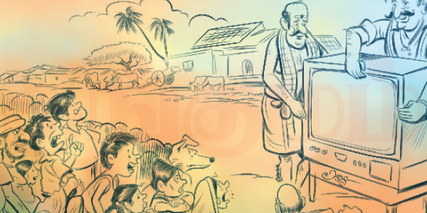 ஞாயிற்றுக்கிழமை ஒரு நாள்தான் தூர்தர்சனில் படம் போடுகிறான். இன்சார்ஜ் மதியழகன், பஞ்சாயத்து போர்ட் கட்டடத்தில் இருந்து மேஜையோடு டிவியை வெளியே எடுத்து வைத்தால்தான், அந்தப் படத்தையும் பார்க்க முடியும்.