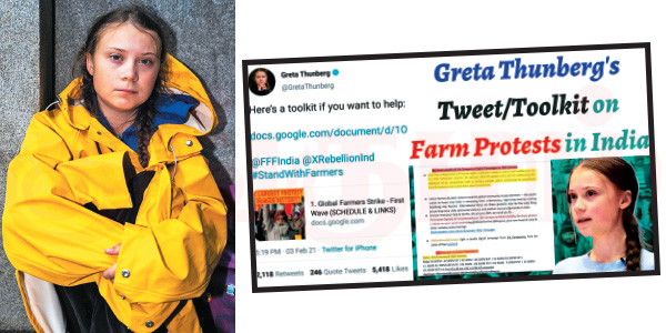 மண்டையைக் குடையும் வினா இதுதான்.இந்தியா முழுக்க இக்கேள்வியை எழுப்பியவர், ஸ்வீடனைச் சேர்ந்த சுற்றுச்சூழல் செயற்பாட்டாளரான கிரெட்டா துன்பெர்க்.தில்லியில் விவசாயிகள் தொடர்ந்து வேளாண் சட்டங்களை எதிர்த்து போராடி வருகிறார்கள் அல்லவா..? விவசாயிகளை ஆதரித்து கிரெட்டா துன்பெர்க் பதிந்த டுவிட்டில், டூல்கிட்டை இணைத்திருந்தார்.