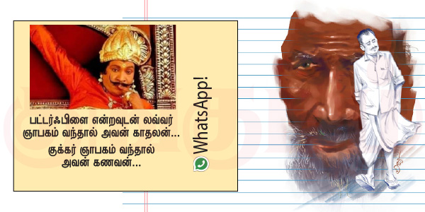 ‘‘இப்போ என்னண்ணே செய்றீங்க..? காலகாலத்துல குடும்பம், வருமானம்னு இருந்திருக்கலாம். விசுவாசம்லாம் தண்ணி மாதிரிண்ணே. தாகமெடுக்கும்போது மட்டும்தான் ராஜமரியாதை. தேவை தீர்ந்ததும், கால் அலம்பிட்டு போயிடுவானுக. சுயநல உலகத்துல சுயமே இல்லாம இருக்கிறது எத்தனை அவஸ்தை..? உங்களை மாதிரி நல்ல மனுசன் யாருக்குமே தேவைப்படாம போறது எத்தனை வேதனை..?’’