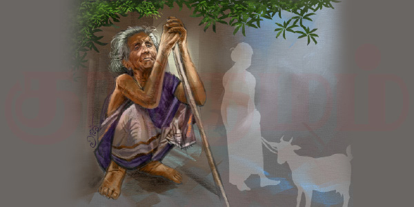 ‘‘இம்புட்டு நேரம் மேச்சும் இதுகளுக்கு வயிறு நெறையல. அதுக என்னா செய்யும்... இந்த காட்டுல பச்ச இல்ல... புல்லு இல்ல. நாளைக்கு விடிஞ்சதும் ரெண்டு வேப்பங் கொலய ஒடிச்சுப் போடணும்...’’இருவரும் ஆடுகளைப் பத்திக்கொண்டு பள்ளத்தில் கிடக்கும் ஊரைப் பார்த்து நடக்க ஆரம்பித்தனர்.வீடு நெருங்க நெருங்க ராமுத்தாய்க்கு அடுத்த பிரச்னையின் கனம் அழுத்த ஆரம்பித்தது.