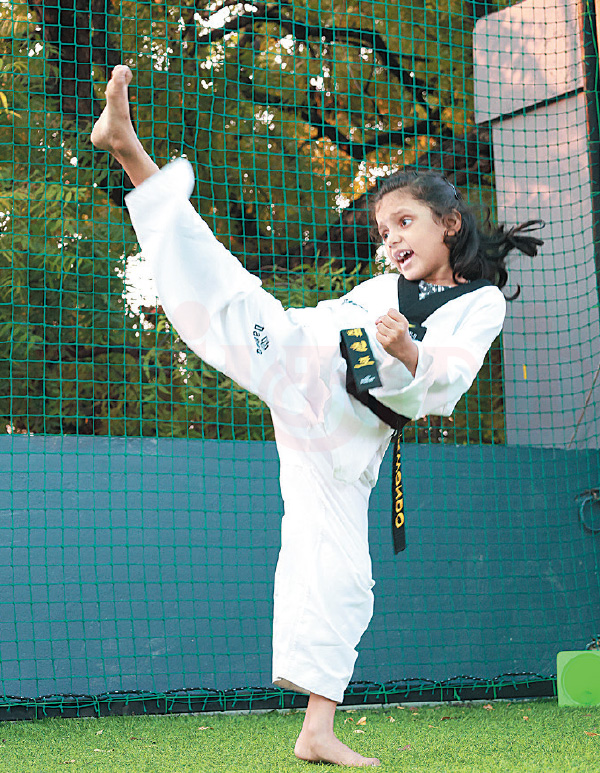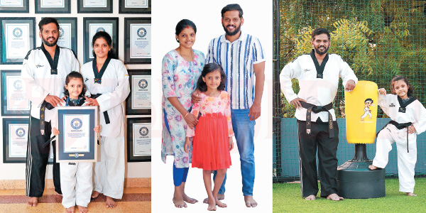 விடாமல் பிராக்டீஸ் பண்ணி 2வது கின்னஸ் சாதனையும் படைச்சேன். அதற்கப்புறம் நிறைய நிகழ்ச்சிகளில் பங்கேற்றேன்...’’ என ஸ்ருதி முடிக்க, துள்ளிக்குதித்தபடி சம்யுக்தா ஓடி வந்தார்.‘‘நான் 4 வயசுல இருந்தே டேக்வாண்டோ கத்துக்கிட்டு வர்றேன். அப்பாதான் மாஸ்டர். காலையிலே சீக்கிரமா எழுந்திருச்சு பிராக்டீஸ் பண்ணேன். அப்புறம் ஸ்கூல் போய்ட்டு வந்து, ஹோம்ஒர்க் எல்லாம் பண்ணிட்டு, மீண்டும் டேக்வாண்டோ கிளாஸ் போவேன். புல் சைஸ், பஞ்ச், பிளாக்.. இப்படி பண்ணி பிளாக் பெல்ட் வாங்கிட்டேன். ஒரு நாள் அப்பா வந்து, ‘இதப்பாரும்மா... நீ கின்னஸ் சாதனை படைக்க விரும்புறியா..? அதுக்கு கொஞ்சம் சிரமப்படணும். டிரை பண்ணு... வெற்றி, தோல்வியை எல்லாம் நினைச்சு கவலைப்படாதே. ஜாலியா செய்... கிடைக்காட்டினாலும் முயற்சி செய்வோம்... அது போதும்...’’ என்கிறார் இந்தத் தம்பதியின் செல்ல மகள்.