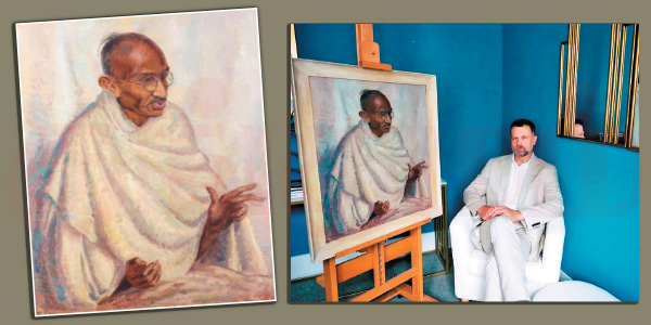 ஓவியா் கிளேர் லெய்டனால் வரையப்பட்ட மகாத்மா காந்தியின் இந்த உருவப்படம் உலகளவில் பல்வேறு தரப்பு மக்களை அவா் சந்தித்து ஆதரவளித்ததை பிரதிபலிக்கும் வரலாற்று ஆவணமாக உள்ளது...’ என்கிறாா் ரியொனன் டெமிரி.ஓவியா் கிளோ் லெய்டன், 1989ல் காலமானாா். அதன்பிறகு அவரிடமிருந்த இந்த உருவப்படம் போன்ஹாம்ஸுக்கு வழங்கப்பட்டது குறிப்பிடத்தக்கது.