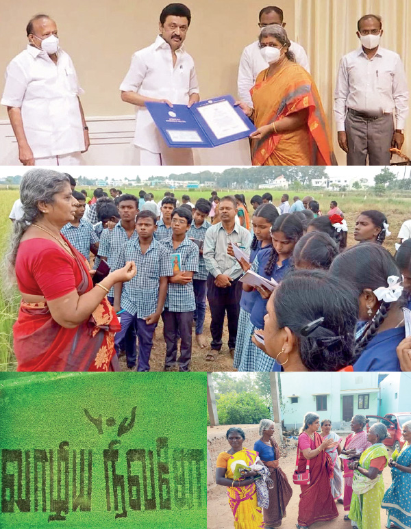 இதுதவிர, விவசாயத்திற்காக நாட்டு மாடுகளையும் வளர்க்கறேன். என் வயலுக்குத் தேவையான பஞ்சகவ்யம் முதலான இயற்கை உரங்களையும் நானே தயாரிக்கறேன்...’’ என நம்மை ஆச்சரியப்படுத்துகிறவர், ‘வாழிய நிலனே’ உருவாக்கியது பற்றி தொடர்ந்தார். ‘‘இப்ப, எங்க பார்த்தாலும் நீர்நிலைகளையும், நிலத்தினையும் மாசுபடுத்துறாங்க.