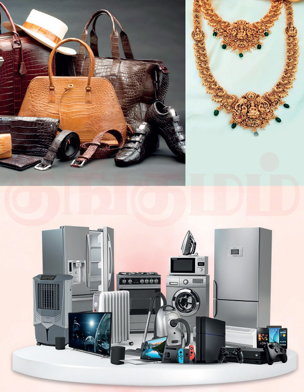இவை தவிர லைட் வெயிட் நகைகள் கடந்த ஓரிரு வருடங்களாகவே டிரெண்டிங்கில் உள்ளன. ரோஸ் கோல்ட், ஒயிட் கோல்டு நகைகள் இளைஞர்களின் சாய்ஸ் ரகமாக விற்பனையில் புதிய உச்சத்தை தொட்டிருக்கின்றன. காலணிகள் / பைகள்