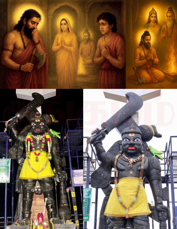 நம் தேசத்தின் பெண்களை எல்லாம் அன்னையாக மதித்து அவர்களுக்கு துன்பம் நேரும்போதெல்லாம் அரணாக இருந்து, காவலனாக காத்து நிற்கப் போகும் கருப்பனின் பிறப்பும் இன்றுதான்... இந்த முகூர்த்தத்தில்தான் நடந்தாக வேண்டும். அதன்படியே, ராம பத்திரனான நீ பரசுராமராக மாறினாய்... உன் அண்ணன், விசுவாஸீ, கருப்பண்ணசாமியாக உருவெடுத்திருக்கிறான்...’’