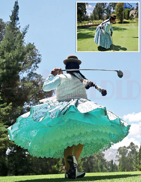 உலகின் மிக உயரமான கோல்ஃப் மைதானங்களில் பொலிவியாவின் லா பாஸ் நகர மைதானமும் ஒன்று. ஆண்டிஸ் மலைத்தொடரில் கடல் மட்டத்தில் இருந்து 3 ஆயிரத்து 360 மீட்டர் உயரத்தில் இந்த கோல்ஃப் மைதானம் உள்ளது. அதாவது சுமார் 10 ஆயிரத்து 945 அடி உயரத்தில் அமைந்திருக்கிறது. இதில் பொலிவியாவின் பூர்வகுடியைச் சேர்ந்த சோலிடாஸ் சமூகப் பெண்கள் கோல்ஃப் விளையாடி வருவது சமீபத்தில் அத்தனை வைரலாகி இருக்கிறது.  இதற்குக் காரணம், இந்தப் பெண்கள் தங்களின் தனித்துவமான பவுலர் தொப்பியை அணிந்தபடி, நீண்ட ஜடைகளுடனும், பாரம்பரியம் கொண்ட வண்ணமயமான மடிப்புள்ள பொலேரா பாவாடையுடனும் கோல்ஃப் ஆடுவதுதான்.