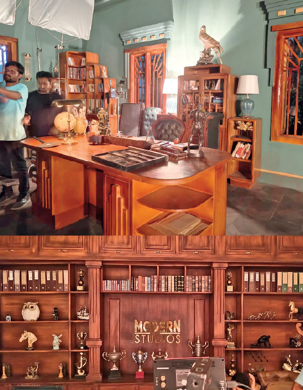 அதற்கு மட்டுமே நாற்பது முதல் ஐம்பது நாட்களாச்சு. ஆர்க்கிடெக்ட் உடன் சேர்ந்து உருவாக்கினோம். அந்த ஸ்டூடியோவுக்குள் இருக்கும் ஜன்னல், கதவுகள், மேசை, நாற்காலிகள் என அனைத்துப் பொருட்களும் நாங்களே டிசைன் பண்ணி மரத்தில் உருவாக்கினோம். எதுவுமே ப்ளாஸ்டர் ஆஃப் பாரிஸ்,பிளாஸ்டிக் ஒர்க் இல்லை.