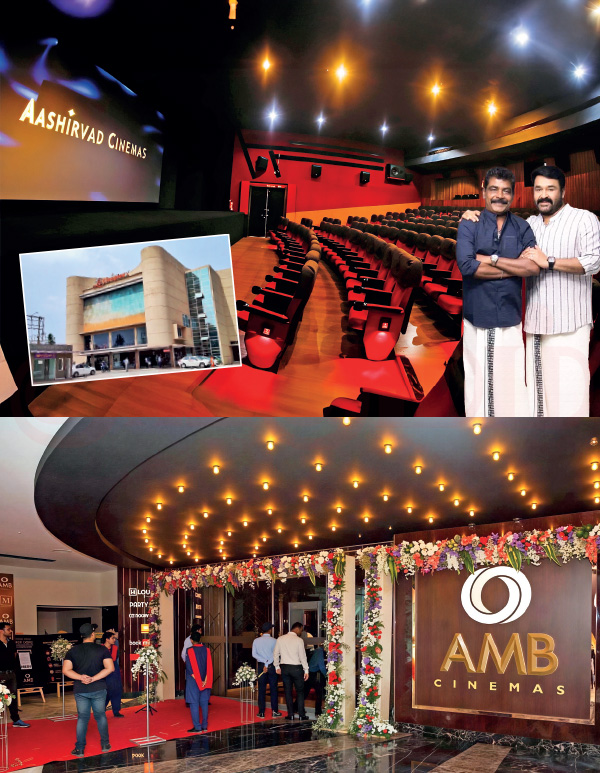 கேரளாவின் குறிப்பிடத்தக்க மல்டிபிளக்ஸ் திரையரங்குகளில் இதுவும் ஒன்று. கோழிக்கோடு, சொர்ணூர், பெரும்பாவூர், மூவாட்டுபுழா, தொடுபுழா, ஹரிபாத், கடப்ரா, கோட்டியம் ஆகிய இடங்களில் ஆசீர்வாத் சினிபிளக்ஸின் திரையரங்குகள் உள்ளன. இதில் மொத்தம் 27 திரைகள் உள்ளன. தயாரிப்பாளர் அந்தோணி பெரும்பாவூருடன் இணைந்து, ஆசீர்வாத் சினிபிளக்ஸை நடத்தி வருகிறார், மலையாள சூப்பர் ஸ்டாரான மோகன்லால். 4K லேசர், டால்பி அட்மோஸ், 3டி என நவீன வசதிகள் அனைத்தும் இந்த திரையரங்குகளில் உள்ளன.