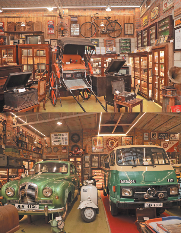 இதுல ஒன்பது விண்டேஜ் கார்கள் வச்சிருக்கேன். இதுல 1945ம் ஆண்டைச் சேர்ந்த ஒரு ஆஸ்டின் கார், 1926ஐச் சேர்ந்த ஆப்ஸ்டிக் சன்னி கார், 1952ஐச் சேர்ந்த ஆஸ்டின் சாமர்செட், 1945ல் இரண்டாம் உலகப் போரில் பயன்படுத்தின ராணுவ ஜீப், ஃபியட்டில் லோடு ஏற்றுகிற ஃபியட் வெஹிக்கிள், மெடாடோர் வேன் ஆகியவை இருக்கு.பிறகு பழைய புத்தகங்கள், நாணயங்கள், உலக நாடுகளின் கரன்சிகள், பழமையான லாட்டரி டிக்கெட்கள், பஸ் டிக்கெட்கள் எல்லாம் சேகரிச்சு வச்சிருக்கேன். இதனுடன் உலக்கை, அம்மினு நம் பழங்காலத்துப் பொருட்களும் இருக்குது.
