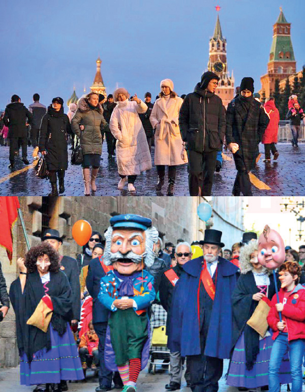புத்தாண்டு ஆரம்பிக்கும் நள்ளிரவுக்கு முன்பு கடந்த வருடத்தில் நடந்த முக்கியமான நிகழ்வுகளை ரஷ்யர்கள் எண்ணிப் பார்க்கின்றனர். புத்தாண்டு ஆரம்பிக்க ஒரு நிமிடம் இருக்கும்போது, 12 நொடிகள் மௌனமாக இருக்கின்றனர். அந்த மௌனத்துக்குப் பிறகு புத்தாண்டு வாழ்த்துகளைப் பரிமாறிக் கொள்கின்றனர். பொது இடங்களில் பட்டாசு வெடித்தும் கொண்டாடுகின்றனர்.