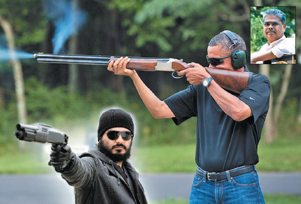 * அப்பாவிகள் துப்பாக்கிக்கு பலியாவதைத் தடுக்க ‘துப்பாக்கி கட்டுப்பாட்டு மசோதா’ கொண்டுவர ஆர்வம் காட்டுகிறார் அமெரிக்க அதிபர் ஒபாமா. இந்த நேரத்தில், ஆறு மாதங்களுக்கு முன்பாக அவர் விடுமுறையில் சுட்டுப் பழகிய போட்டோவை வெளியிட்டு பரபரப்பு கிளப்பியிருக்கிறது வெள்ளை மாளிகை. துப்பாக்கி தயாரிக்கும் நிறுவனங்களை அசத்தவே இந்த போட்டோ என விளக்கம் கொடுக்கிறார்கள் ஒபாமாவின் ஆலோசகர்கள்.