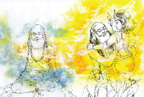 அந்தத் துளியை மீண்டும் இறைவன் என்கிற சூரியக் கிரணம், தன் சக்தி மிகுந்த ஒளியால் ஆவியாக்கி தம்மோடு இணைத்துக்கொள்கிறது. இந்த நிகழ்வு இறைவனின் கருணை. அவன் அருள் சக்தி, மீண்டும் அவனோடு சேர்வதுதான் சுகம்... பேரானந்தம். நெருக்கமானவர்களிடம் மெல்லச் சொன்னார்.