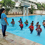 தண்ணீரில் யோகா... கயிறு கட்டி யோகா!