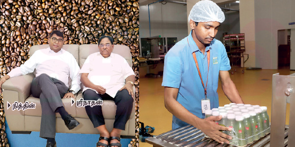 இது எங்களின் பில்டர் காஃபியின் தரத்தினை அதிகரிக்க செய்தது மட்டுமில்லாமல் பல புதிய யுக்திகளை பிசினஸில் அறிமுகம் செய்யவும் உதவியது. எங்க தொழிற்சாலையில் உள்ள இயந்திரங்கள் அனைத்தும் ஆட்டோமெட்டிக் முறையில் இயங்கக்கூடியது. இதன் மூலம் காஃபிக் கொட்டைகள் சரியான பதத்திற்கு வறுக்கப்பட்டு, சீராக கலக்கப்பட்டு பேக்கிங் செய்யப்படுகிறது. இதுவும் எங்களின் வளர்ச்சிக்கு ஒரு காரணமாக அமைந்தது’’ என்றவரை தொடர்ந்தார் நிறுவனத்தின் இயக்குனரான அவரின் மகன் நித்தின்.