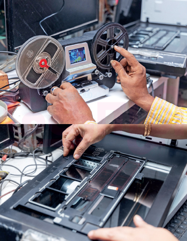 பழமையானவை என்பதால் ரீல்கள் கீறலுற்று அறுந்துவிடுகின்ற நிலையில் இருக்கும். விடுபட்ட ரீல்களை மீண்டும் ஒட்டி இணைத்து ஃபிலிம் டிஜிட்டைசர் கன்வெர்ட்டர் மெஷினில் வைத்து இயக்குவோம். அது ரீலில் உள்ள ஒவ்வொரு படத்தையும் பதிவு செய்து கொள்ளும். பின்னர் அந்தத் தரவுகளை கம்ப்யூட்டரில் சில சாஃப்ட்வேர்களை கொண்டு இயக்கும்போது வீடியோவாக பிளே ஆகும். அதை டிஜிட்டல் வடிவமாக மாற்றி பென் ட்ரைவில் பதிவு செய்து தருவோம். உதாரணமாக 3 மணி நேரம் கொண்ட வீடியோவை பதிவு செய்யவேண்டும் என்றால் அந்த வீடியோ முழுமையாக பிளேயாக வேண்டும்.
