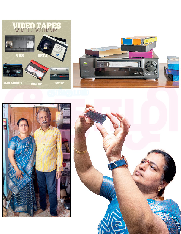எனவே, வாடிக்கையாளர்கள் கொண்டு வரும் கேசட்டுகள், டிஸ்க்குகள், ரீல்களை பிளேயர்களில் இயக்கி அதனை டிஜிட்டல் தரவுகளாக மாற்றி பென் டிரைவில் பதிவு செய்து தருகிறோம். என் மனைவியும் இந்தப் பணியில் ஆர்வம் காட்டியதால், நாங்க இருவரும் இணைந்து செய்துவருகிறோம்” என்ற ரவிசங்கரை தொடர்ந்தார் ஷர்மிளா.