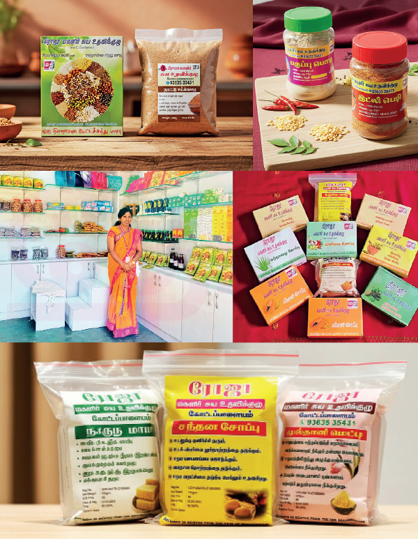 ரோஜா சுய உதவிக் குழுவை அமைத்து, 12 பெண்களை இணைத்தேன். வீட்டில் நான் தயாரிக்கும் சோப்புகளை குழு பெண்களிடம் விற்பனை செய்தேன். குப்பைமேனி, வேப்பிலையுடன் ஓமவள்ளி இலை, கஸ்தூரி மஞ்சள், எலுமிச்சம்பழம், தேங்காய் எண்ணெய் கலந்து சோப் தயாரித்தேன்.