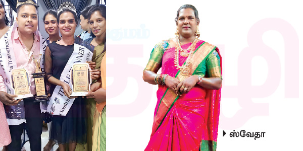 திருநங்கைகளுக்கு கிடைக்கும் ஒருசில வாய்ப்புகள் கூட திருநம்பிகளுக்கு கிடைப்பதில்லை. கல்வி இடைநிற்றல், வேலையின்மை போன்றவற்றால் பாதிக்கப்படுகின்றனர். அவர்களுக்கு ஆதார் மற்றும் பான் அட்டையினை பெற உதவி செய்திருக்கிறேன்’’ என்றவரை தொடர்ந்தார் அழகி ராணியாக வெற்றி பெற்ற திருநங்கை ஸ்வாதி.