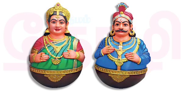 ‘‘என் கணவருக்கு உதவியாகத்தான் இந்த வேலைக்கு வந்தேன். நாங்க மண்ணிற்கு பதில் காகித துகள்கள், சாக் பவுடர், இயற்கையாக கிழங்கு மாவினால் செய்கிற கூழ் வைத்து பொம்மைகள் செய்கிறோம். பிளாஸ்டிக், ரப்பர் போன்ற பொருட்களை கொண்டும் இந்த பொம்மைகளை தயாரிக்கிறார்கள். ஆனால், பாரம்பரியமான இந்த பொம்மைகளின் அடையாளமே கீழே படுக்க வைத்தால் தானாக நிமிர வேண்டும் என்பதுதான்’’ என்றவர் அதன் வரலாற்றினை விவரித்தார்.