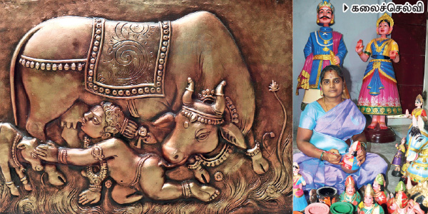 ‘‘நான் பிறந்தது திருவாரூர் மாவட்டம். பத்தாவது வரை படிச்சிருக்கேன். திருமணமாகி தஞ்சாவூருக்கு வந்துவிட்டேன். என் கணவர் எதை பார்த்தாலும் அப்படியே தத்ரூபமாக சிலையாக செய்யும் ஆற்றலுடையவர். அவரும் அவர் குடும்பத்தாரும் பரம்பரையாக ராஜா, ராணி தலையாட்டி பொம்மைகள், கழுத்து, இடுப்பு தனித்தனியே ஆடும் நடன பொம்மைகள், செட்டியார் பொம்மைகளை செய்து வந்தாங்க.
