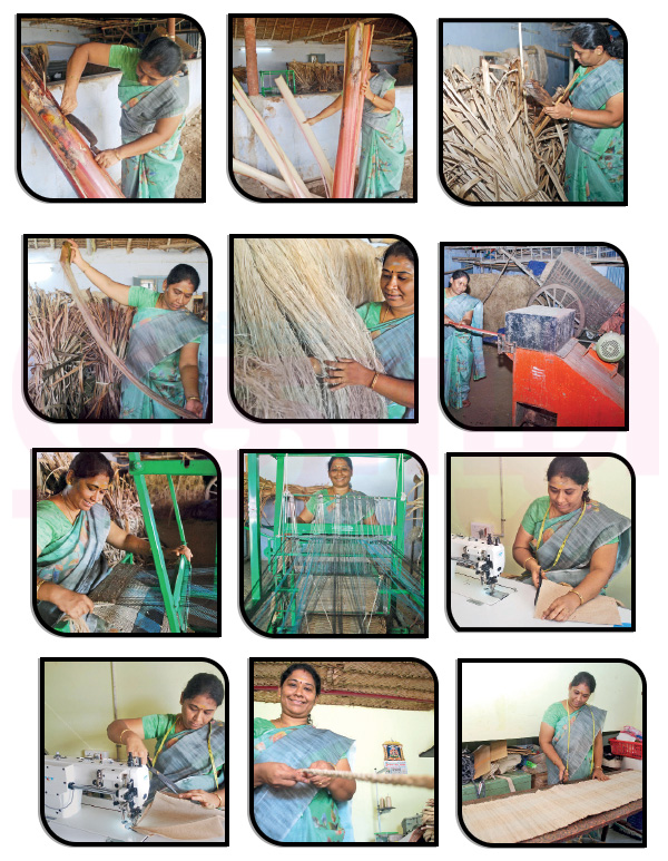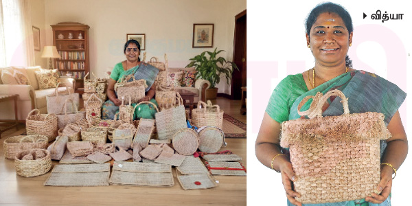 அதுவே எனக்குள் பெரிய உற்சாகத்தை கொடுத்தது. நான் தயாரிக்கும் பொருட்கள் மனிதர்களையும் சுற்றுச்சூழலையும் பாதிக்காத வகையில் இருக்க வேண்டும் என்பதில் உறுதியாக இருக்கிறேன்’’ என்றவர், வாழை நார் மற்றும் பனையோலை கொண்டு மதிப்பு கூட்டுப் பொருட்கள் உற்பத்தியிலும் பயிற்சி பெற்றுள்ளார். ‘‘எங்க ஊரில் வாழை விவசாயம்தான் அதிகம். வாழைத்தார்கள் அறுவடைக்குப் பிறகு வாழை மரங்களை வயலில் அப்படியே விவசாயிகள் விட்டுவிடுவார்கள். அதை காலி செய்தால் போதும் என்பதுதான் விவசாயிகளின் நோக்கமாக இருக்கும். அந்த மரங்களை நாங்க வெட்டிக் கொண்டு வருவோம். தண்டு வரும் வரை உரித்து, ஈரப்பதம் இல்லாமல் காய வைத்து, மிஷினில் நாராக பிரித்து எடுப்போம். அந்த நாரினை கைத்தறியில் கொடுத்து படுக்கை மற்றும் தரை விரிப்புகளாக நெசவு செய்வோம்.