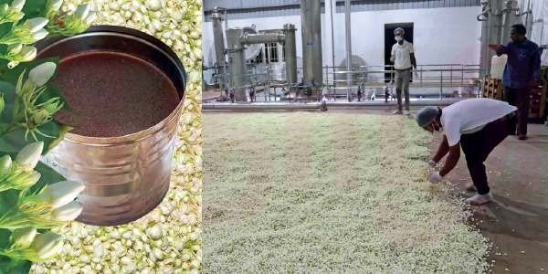 1000 கிலோ மல்லிப் பூவிலிருந்து ஒரு கிலோ அப்சலூட்தான் பெற முடியும். எண்ணெய் வடிவத்தில் இருக்கும் இந்த திரவம் ரோஜா, மஸ்க், ஆரஞ்சு பூ போன்ற பிற இயற்கை எண்ணெய்களுடன் கலந்து, உலகத் தரமான பர்ஃப்யூமாக மாறுகிறது.
