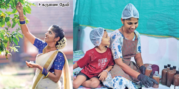 ‘‘நான் சின்ன வயசில் இருக்கும் போதே என் பெற்றோர் இருவருமே தவறிட்டாங்க. எனக்கு ஒரு அண்ணன், தம்பி. நாங்க மூவருமே ஹாஸ்டலில்தான் வளர்ந்ேதாம். என் உறவினர்கள் உதவியால் படிச்சோம். நான் +2க்குப் பிறகு மேல படிக்கல. அதன் பிறகு நகைக்கடையில் வேலைக்கு சேர்ந்தேன். அங்குதான் என் கணவரை சந்தித்தேன். திருமணத்திற்குப் பிறகுதான் நான் இந்த பிசினசே ஆரம்பிச்சேன்’’ என்று கடகடவென்று பேசத் துவங்கினார் கருணை தேவி. இவர் ‘கேரளத்து தமிழச்சி’ என்ற பெயரில் இணையத்தில் மிகவும் ஃபேமஸ். காரணம், இவர் ஹேர் ஆயில் மற்றும் குளியல் பொடியினை தயாரித்து கேரளா மட்டுமில்லாமல் தமிழ்நாட்டிலும் விற்பனை செய்து வருகிறார்.  ‘‘என் கணவரின் சொந்த ஊர் கேரளாவில் உள்ள திருச்சூர். எங்களுக்கு இரண்டாவது குழந்தை பிறந்த பிறகு கேரளாவுக்கு வந்துட்டேன். அதுவரை சென்னையில்தான் நானும் என் கணவரும் வேலை பார்த்து வந்தோம். இரண்டு குழந்தைகளையும் பார்த்துக் கொள்ள முடியாது என்பதால் என் மாமியார் என்னை கேரளாவுக்கே வரச்சொல்லிட்டாங்க. இங்க வந்து ஐந்து வருஷமாச்சு.