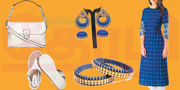இண்டிகோ ஹேண்ட்லூம் லாங் குர்தா, வெள்ளை லெக்கிங்ஸுடன் மேட்ச் செய்தால் செம லுக் கிடைக்கும். மேலும் லெக்கிங்ஸ் என்ன கலரில் பயன்படுத்துகிறோமோ அதே கலரில் காலணியும் பயன்படுத்தினால் பொதுவாகவே ராயல் லுக் கொடுக்கும். அப்படித்தான் மேட்ச் செய்திருக்கிறோம்.