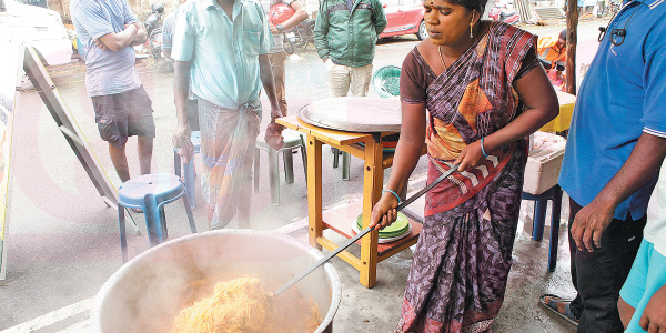 புரிந்து கொண்டார். அவர் சொன்ன வழிகாட்டல் படி உரிமம் எடுத்தேன். அதன் பிறகு வீட்டு வாசல் என்பதால் கொஞ்சம் மண்ணாக இருந்தது. அதை சிமென்ட் தரையாக மாற்றி மேலே ஒரு தார்ப்பாய் போட்டேன். இப்ப மழை வந்தாலும் எங்களால் அங்க சமைக்க முடியும். மேலும் ஒரு ஐந்து பேர் உட்கார்ந்து சாப்பிடவும் முடியும்.
