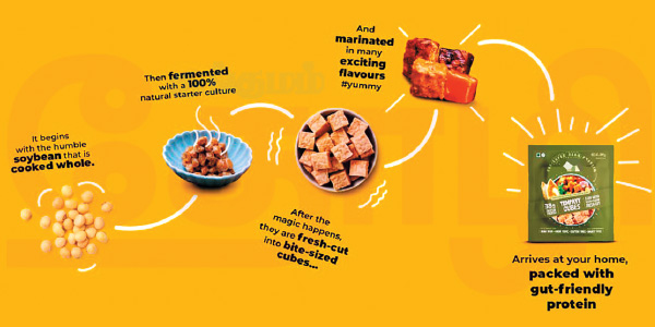 டெம்பே உணவு புதுசு இல்லை. பல ஆண்டுகளுக்கு முன் தென் கிழக்கு ஆசியாவில் இந்த உணவு மிகவும் பிரபலம். முழுக்க முழுக்க சோயா மூலம் தயாரிக்கப்படும் இந்த உணவில் புரத சத்து மிகவும் அதிகம். பனீர் மற்றும் டோஃபூவிற்கு மாற்றாக பயன்படுத்தும் இதில், 100 கிராம் அளவில் 19 கிராம் புரத சத்து நிறைந்துள்ளது என்று உணவு ஆலோசகர்கள் கூறுகிறார்கள். உடலுக்கு எந்த வித தீங்கும் ஏற்படுத்தாது என்பதால், இதை அனைத்து வயதினரும் சாப்பிடலாம்’’ என்று கூறும் சித்தார்த் இதனை நான்கு ஃபிளேவர்களில் அறிமுகம் செய்துள்ளார்.