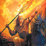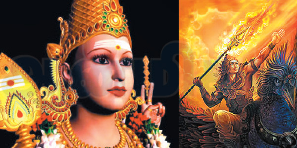 ‘‘தேவர்கள், மகாதவசிகள், பிரம்மன், திருமால் (திரு-பாங்கர்) இவர்களெல்லாம் ஓலமிட, அவர்களை ‘அஞ்சாதீர்கள்’ எனும்படி வீரத்துடனே சென்று அரக்கர்கள் உடல்கள் இறந்தொழியவும், கடல்களும், எட்டு மலைகளும் பொடி தூளெழவும், யமனும் தன் பாசக்கயிற்றை வியப்புடன் வீசவும் வேலாயுதத்தைச் செலுத்தியவனே! பூச்செண்டணிந்துள்ள சடையில், பாம்பு, கங்கை நீர், பிறை, எலும்பு இவற்றை அணிந்தவன் மற்றும் உயர்ந்த திருநீற்றைப் பூசிய தேகத்தினனும் ஆகிய சிவபிரானது குமாரனே! செவ்வேளே! வேலனே! முருகோனே!
