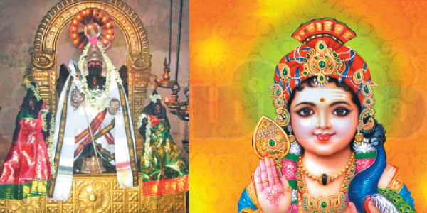 பிரதான வாயில் வழியாக உள்ளே நுழையும்போது வலப்புறம் சூரியன், பைரவர், அகோர வீரபத்ரர் ஆகியோரையும், இடப்புறம் சந்திரனையும் வணங்கலாம். வெளியே லிங்கோத்பவர், பிரம்மன், துர்க்கை, சண்டிகேஸ்வரர் ஆகியோரை வணங்குகிறோம். முருகன் வள்ளிதெய்வயானையுடன் காட்சி அளிக்கிறார்.