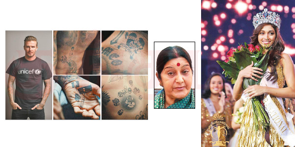 * ‘உலகின் கவர்ச்சியான ஆண்’ என்ற பட்டத்துக்குச் சொந்தக்காரர் இங்கிலாந்தைச் சேர்ந்த கால்பந்து ஆட்டக்காரர் டேவிட் பெக்காம். உடலில் விதவிதமாக டாட்டூகளை வரைந்துகொள்வதில் பெருங்காதல் கொண்டவர். தனக்குப் பிடித்தவர்களின் பெயர்கள், வாழ்க்கையில் நடந்த முக்கிய சம்பவங்களையே டாட்டூகளாக வரைந்திருந்தார். இப்போது, ‘யுனிசெஃப்’ அமைப்புக்காக ‘குழந்தைகளுக்கு எதிரான வன்முறையை ஒழிக்கும்’ நோக்கத்தில் டாட்டூகளை வரைந்துள்ளார்.