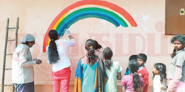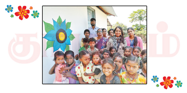 ‘‘சமூகத்துக்காக ஏதாவது செய்யணும்னு தோணுச்சு. எங்களை மாதிரியே புறக்கணிக்கப்பட்ட ஒரு சமூகத்துக்குச் சேவை செய்யணும்னு முடிவு பண்ணினோம். அப்ப உருவானதுதான் இந்த ‘அன்பின் சுவர்கள்’. பெரும்பாலான மலைக்கிராமங்கள், பின்தங்கிய கிராமங்கள்ல இருக்குற கொழந்தைகள் ஸ்கூலுக்குச் சரியா வர்றதில்ல. பசங்கள ஸ்கூலுக்குக் கொண்டு வர்றதே அங்கிருக்குற டீச்சர்களுக்கு பெரிய சவாலா இருக்கு. இந்த மாதிரியான பள்ளிகளைத் தேர்ந்தெடுத்து, அதன் சுவர்களுக்கு வெள்ளை அடிச்சோம். அதுல பல்வேறு விதமான ஓவியங்களை வரைஞ்சோம்.