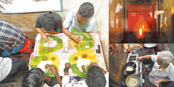 சாத்வீக உணவு முறைதான். காரம், உப்பு குறைவாகத்தான் இருக்கும். மதிய உணவுடன் கரிசலாங்கண்ணி, தூதுவளை, அரைக்கீரை, சிறுகீரை, முருங்கைக் கீரை, புளிச்ச கீரை என அரிதான் உணவு இங்கே கிடைக்கும்! இரவு இட்லி தோசை. ‘‘ஊரே 30 ரூபாய்க்கு அளவுச் சாப்பாடு தரும்போது, இவர் பத்து ரூபாய்க்கு அன்லிமிட்டட் மீல்ஸ் தந்தார். கேட்டா, ‘சாப்பாட்டுக்குக் காசு வாங்கறதே பாவம். ஜீவகாருண்யத்துக்கு எதிரானது. நாம தொடர்ந்து மக்களுக்கு சாப்பாடு போடணும். அடுத்த நாள் மளிகைப் பொருள் வாங்க இந்தக் காச வாங்கறேன்’பார். பிழைக்கத் தெரியாத ஆளுனு நாலு பேரு திட்டும்போது மனசு கொதிக்கும்.