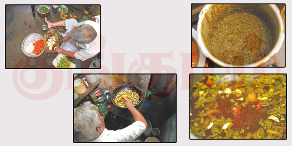 கரிசலாங்கண்ணி கீரை துவையல் வெள்ளை கரிசலாங்கண்ணி கீரை - ஒரு கட்டு. காய்ந்த மிளகாய் - 8. உளுத்தம் பருப்பு - சிறிதளவு. மிளகு - ஒரு தேக்கரண்டி. பூண்டு - 8 பல். கொத்தமல்லி விதை - ஒரு தேக்கரண்டி. நல்லெண்ணெய் - சிறிதளவு. உப்பு - சிறிதளவு. புளி - சிறு உருண்டை. பக்குவம்: கீரையை ஐந்து முறைக்கும் மேல் சுத்தமாகக் கழுவி வாணலியில் சிறிதளவு எண்ணெய் விட்டு காய்ந்த மிளகாய், உளுத்தம் பருப்பை சிவக்க வறுத்து, மிளகு மற்றும் மல்லியை வறுத்துக் கொள்ளவும். இதனை தனியே எடுத்து வைத்து, அதே பாத்திரத்தில் நல்லெண்ணெய் விட்டு கீரையை வதக்கி, ஆறியபின் லேசான சூட்டில் மத்தினால் கடைந்தால் கரிசலாங்கண்ணி கீரை துவையல் தயார். தூதுவளை ரசம் தூதுவளை கீரை - அரைக் கட்டு. மிளகு - 3 தேக்கரண்டி. சீரகம் - 3 தேக்கரண்டி. பூண்டு - 15 பல். தக்காளி - இரண்டு. புளி - எலுமிச்சம்பழ அளவு. காய்ந்த மிளகாய் - 8. கொத்தமல்லி, கறிவேப்பிலை - சிறிதளவு. பெருங்காயம் - சிறிதளவு. பக்குவம்: மிளகு, சீரகம், பூண்டு ஆகியவற்றை அம்மியில் தட்டி தனியாக வைக்கவும். புளியை தண்ணீரில் ஊறவைத்து சக்கையை நீக்கி புளிக்கரைச்சலாக எடுத்து தக்காளிப் பழத்தை மசித்து புளிக்கரைச்சலோடு சேர்த்து குறைவான தீயில் சுடவைத்து, தட்டிவைத்த மிளகு, சீரகம், பூண்டு சேர்த்து கொதிக்க விடவும். தூதுவளை இலை, கொத்தமல்லி, கறிவேப்பிலை, உப்பு சேர்த்து கொதிக்கும் முன் இறக்கவும். தனியாக எண்ணெய் ஊற்றி கடுகு தாளித்து ரசத்தை அதில் கொட்டி இறக்கினால் தூதுவளை ரசம் ரெடி.