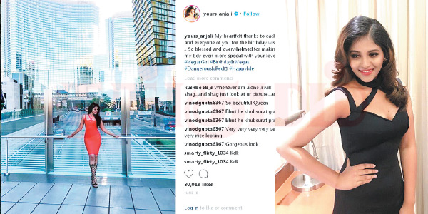 ஆனந்தத்தில் மிளிர்கிறார் அஞ்சலி. தமிழிலும், தெலுங்கிலும் கணிசமான படங்களை கைவசம் வைத்திருக்கும் அவர், தனது பிறந்த நாளை அமெரிக்காவின் லாஸ்வேகாஸ் நகரில் கொண்டாடி மகிழ்ந்திருக்கிறார். இந்த பர்த் டே ஸ்பெஷலாக இன்ஸ்டாவில் புகைப்படம் ஒன்றை தட்டிவிட, ஆயிரக்கணக்கில் லைக்குகளும், வாழ்த்துகளும் அஞ்சலிக்குக் குவிந்துள்ளன.