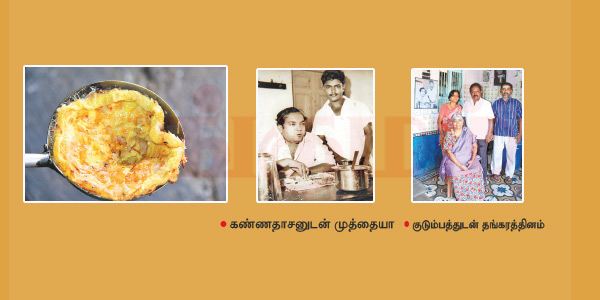 தாத்தாவுக்குப் பிறகு அப்பா வேல்ராஜ் அதே சுவை, பக்குவத்தோட மெஸ்ஸை நடத்தினார். இப்ப அவங்க வழிகாட்டுதலோடு நாங்க பொறுப்பேத்திருக்கோம்.எங்க மெஸ்ஸோட ருசி மாறாம சுவையா இருக்கக் காரணம் எங்க பாட்டி தங்க துரைச்சி அம்மாள். அசைவத்துக்கு தேவையான மசாலா ஃபார்முலாவை அவங்கதான் எங்களுக்கு சொல்லிக் கொடுத்தாங்க. இப்ப வரை அந்த ஃபார்முலாவைத்தான் கடைப்பிடிக்கறோம். இப்பவும் அம்மிலயும் உரல்லயும்தான் இடிக்கறோம். விறகடுப்புலதான் சமைக்கறோம்...’’ என்கிறார் மூன்றாம் தலைமுறையில் மூத்தவரான தங்கரத்தினம். மெஸ்ஸின் சுவரில் கவியரசு கண்ணதாசன் சாப்பிடும் படத்தை பெரிதாக மாட்டி வைத்திருக்கிறார்கள். சங்கரன் கோவிலுக்கு நாடகம் போட வரும்போதெல்லாம் கண்ணதாசன் இங்குதான் சாப்பிடுவாராம். இங்கு சமைக்கப்படும் வெள்ளாட்டுக் கறி பிரியாணிக்கு அவர் ரசிகராம். போலவே கடைசியாக தவறாமல் இங்கு வைக்கப்படும் ரசத்தை சாப்பாட்டில் ஊற்றி சப்புக்கொட்டி சாப்பிடு வாராம். அந்தளவுக்கு இந்த மெஸ்ஸின் ரசப் பிரியர் அவர். விளைவு, இந்த ரசத்தை பாடு பொருளாக வைத்து கவிதை ஒன்றையே இயற்றிவிட்டார்!