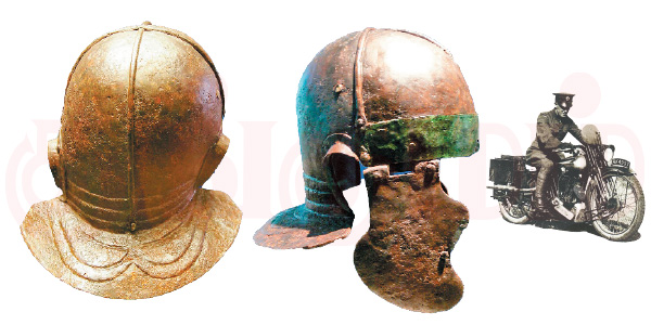 மோட்டார் சைக்கிள் ஹெல்மெட்: இரண்டு சக்கர வாகனங்களைப் பயன்படுத்துபவர்களுக்கான பிரத்யேகமான ஹெல்மெட் இது. இருபதாம் நூற்றாண்டின் ஆரம்ப வருடங்களில் பலருக்கு புகைப்படங்களில் மட்டுமே இரண்டு சக்கர வாகனங்களைப் பார்க்கக்கூடிய வாய்ப்பு இருந்தது. அதனால் பெரிய அளவில் விபத்துகள் நிகழவில்லை. வாகனங்கள் ஓடும் வேகமும் குறைவு என்பதால் விபத்து நிகழ்ந்தாலும் பெரிதாக அடிபடவில்லை.