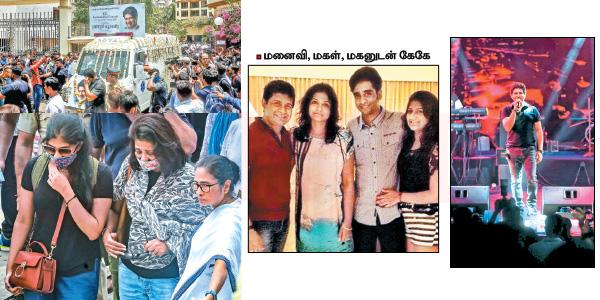 கூடவே கேகேவின் மகள் தாமரா தன்னுடைய இன்ஸ்டாவில், தன் அப்பாவின் இறுதிச்சடங்கு தொடர்பான தகவல்களைப் பகிர்ந்திருப்பதோடு, ‘நான் உங்களை எப்போதும் நேசித்துக்கொண்டே இருப்பேன் அப்பா...’ என்று நெகிழ்ந்திப்பதும் ரசிகர்களை உருக்கியிருக்கிறது.தாமராவும் பாடகி என்பதால், அப்பாவின் இசைப்பயணம் மகள் வழியாகத் தொடரும் என்று ரசிகர்கள் தங்களைத் தாங்களே சமாதானப்படுத்தி வருகிறார்கள்.