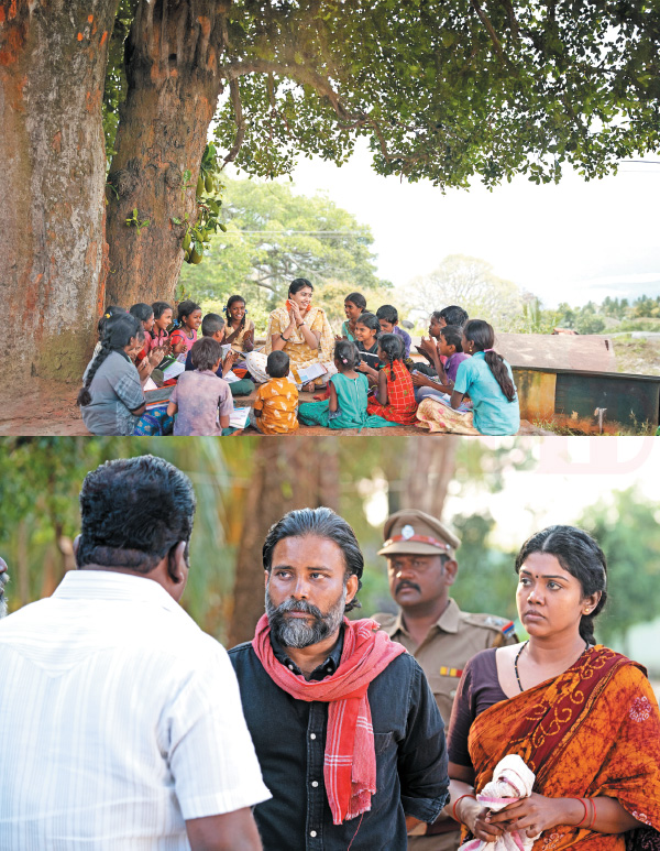 வின்சு ரேச்சல் கலையரசனுக்கு ஜோடியா வர்றாங்க. மாடலிங் பேக்ரவுண்ட் உள்ளவர். இதுல அறிமுகப்படுத்துகிறேன். ரித்விகா, தினேஷ் ஜோடியா வர்றாங்க.ஷபீர், பாலசரவணன் இருவருக்கும் முக்கியமான ரோல். இவர்களுடன் அருள்தாஸ் ‘சார்பட்டா’ முத்துக்குமார், கவிதா பாரதி, யுவன் மயில்சாமி இருக்காங்க.ஆர்ட்டிஸ்ட்ஸ் அனைவரும் பெரிய சப்போர்ட் கொடுத்தாங்க. கர்நாடகா - தமிழ்நாடு எல்லைப் பகுதியில் ஒரு சிறிய கிராமம். அந்த ஊருக்குள் பஸ் போனதில்லை. கேரவன் போக முடியாது.