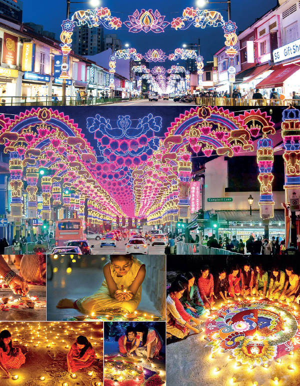சிங்கப்பூர் மக்கள் தொகையில் 9 சதவீதத்தினர் இந்தியர்கள் என்பது குறிப்பிடத்தக்கது. தீபாவளி கொண்டாட்டத்தின்போது இந்தியர்களின் ஒவ்வொரு வீடும் சுத்தம் செய்யப்பட்டு, தீபங்களால் ஒளிரும்.