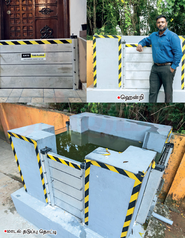 சில ஆண்டுகளுக்கு முன் ஹென்றி ஆரம்பித்த ‘கேட் த ஃப்ளட்’ எனும் ஒரு சிறு நிறுவனம்தான் இந்த செப்டம்பர் முதல் வீடுகளில் புகும் வெள்ளத்தை தடுப்பதற்கான கதவை சென்னையில் சுமார் 100 வீடுகளுக்காவது உருவாக்கிக் கொடுத்திருக்கிறது. தொடர்ச்சியாக சென்னைவாசிகளின் தொலைபேசி அழைப்புகளுக்கு இடையே அவரை சந்தித்தோம். ‘‘நானும் வெள்ளத்தில் பாதிக்கப்பட்டதால்தான் இந்த முயற்சி...’’ சிரித்தபடி பேசத் தொடங்கினார் ஹென்றி.  ‘‘நான் சென்னைவாசி. பள்ளிக்கரணைதான் சொந்த ஊர். 2022ல பள்ளிக்கரணைல சொந்த வீடு கட்ட நிலம் வாங்கினேன். வாங்கும்போது இனிமேல் சென்னையில் 2015ல் ஏற்பட்ட மாதிரி வெள்ளம் எல்லாம் வராது என நிலம் விற்றவர்கள் சொன்னார்கள். அதை நம்பித்தான் கீழ்த் தளத்தையும், ஒரு மேல் தளத்தையும் அந்த ஆண்டின் ஆரம்பத்திலேயே கட்ட ஆர்மபித்தேன்.