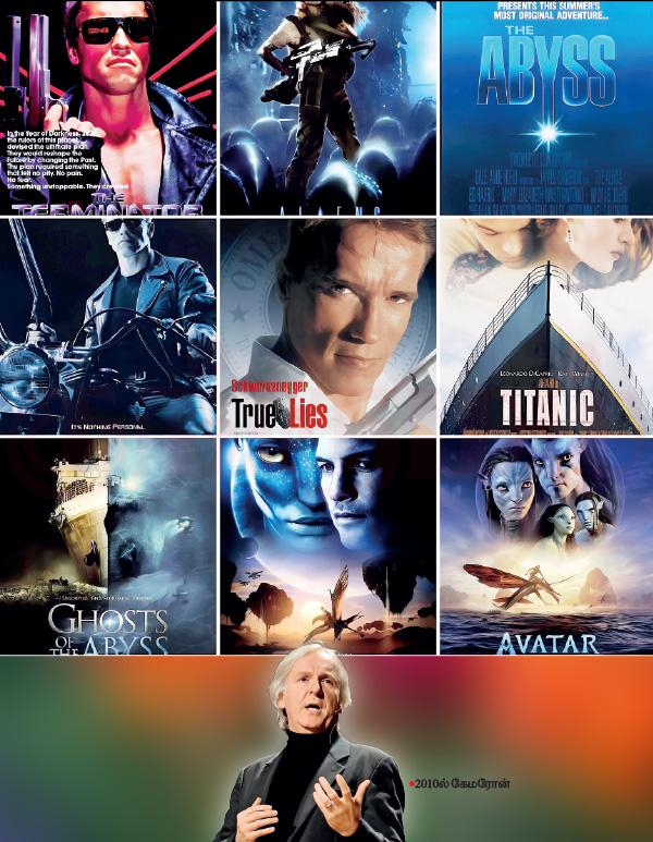 ஜேம்ஸ் கேமரோனின் தனிப்பட்ட வாழ்க்கை, அவர் படத்துக்காக தயாராகும் விதம், ஒவ்வொரு காட்சியும் உண்மைத்தன்மையுடன் வர வேண்டும் என்பதற்காக உயிரைப் பணயம் வைத்து அவர் மேற்கொள்ளும் ஆய்வுகள், உழைப்பு, அர்ப்பணிப்பு எல்லாம் தனிக்கதை.