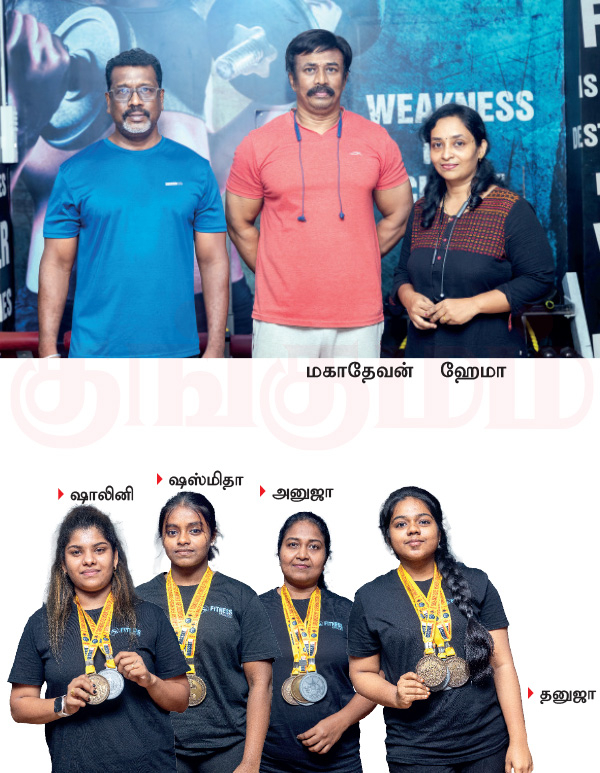 ‘‘எங்க ஜிம்மில் பயிற்சி எடுக்க வருபவர்களுக்கு உடலை பலப்படுத்தவும், உடல் எடையை குறைக்கவும் ஸ்குவாட், டெட்லிஃப்ட் போன்ற பயிற்சிகள் கொடுப்பது வழக்கம். அதில் சிறப்பா பயிற்சி செய்பவர்களை போட்டிக்குத் தயார்படுத்துவோம். அப்படியாக மாவட்ட அளவில் நடந்த போட்டிகளில் எங்க ஜிம் பெண்கள் கலந்துக்கிட்டு ஜெயிச்சாங்க. இப்ப, முதல்முறையா மாநில அளவிலான போட்டி பெண்களுக்கென்றே தனியாக நடத்தப்பட்டுச்சு. அதில் 29 பதக்கங்களுடன் சாம்பியன் பட்டத்தையும் வென்றிருப்பது ரொம்ப சந்தோஷமா இருக்கு...’’ என உற்சாகமாகப் பேசினார் ஜிம்மின் நிறுவனரும், தலைமைப் பயிற்சியாளருமான மகாதேவன்.  ‘‘முன்னாடியெல்லாம் ஆண்களுக்கும் பெண்களுக்கும் சேர்ந்தாற்போலவே போட்டிகள் நடந்துச்சு. இப்ப, நிறைய பெண்கள் பவர்லிஃப்டிங் விளையாட்டுக்கு ஆர்வமாக வர்றதால் இவங்களுக்குத் தனியாக ஆரம்பிச்சிருக்காங்க.இந்தப் போட்டி சப்-ஜூனியர், ஜூனியர், சீனியர், மாஸ்டர்ஸ்னு நடக்கும். எங்க ஜிம்மில் பள்ளி, கல்லூரியில் படிக்கிற பசங்களும் இருக்காங்க. வேலைக்குப் போகிற பெண்களும் இருக்காங்க. ஹவுஸ்வொய்ஃப்களும் இருக்காங்க. இவங்கதான் தங்களால் முடியும்னு பதக்கம் வென்று காட்டியிருக்காங்க.