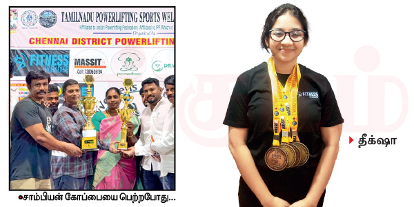 21 வயசாகும் தீக்ஷா ஜூனியர், சீனியர் என இரண்டிலும் பதக்கங்கள் வென்று வந்துள்ளார். இவரின் அம்மா காமாட்சியும் 95 கிலோ டெட்லிஃப்ட் பிரிவில் வெள்ளி வென்று அசத்தியுள்ளார்.