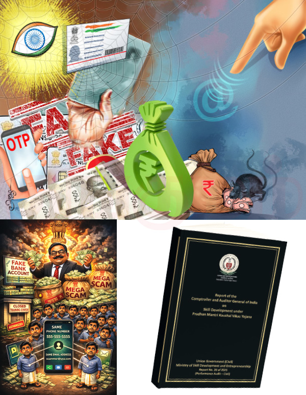 எந்த வங்கிக் கணக்கும் இப்படியான நம்பர்களில் இருப்பதில்லை என்கிறது அந்த அறிக்கை. அதுமட்டுமல்ல, இந்தத் திட்டத்தில் இரண்டு மற்றும் மூன்றாம் கட்டங்களில் நடந்த பயிற்சிகளின் தரவுகளைத் தணிக்கை செய்ததில், மொத்தம் 95,90,801 பேர் பயிற்சி பெற்றுள்ளனர். இதில் 90,66,264 பேரின் வங்கிக் கணக்கு விவரங்கள் ஜீரோவாக அல்லது எதுவும் குறிப்பிடாமல் இருந்தன என்கிறது அறிக்கை. அதாவது 94.53 சதவீதத்தினரின் வங்கிக் கணக்குகள் போலியானவை. இதில் மீதமுள்ள 5,24,537 பேர்களில் 12,122 தனிப்பட்ட வங்கிக் கணக்கு எண்கள், 52 ஆயிரத்து 381 பேர்களுக்கு பயன்படுத்தப்பட்டுள்ளன. அதாவது ஒரு வங்கிக் கணக்கு எண் இரண்டுக்கும் மேற்பட்ட தடவை பயன்படுத்தப்பட்டுள்ளது.